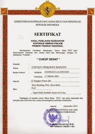 penilaian kesehatan KSP dan USP Koperasi, yang dibuktikan dengan sertifikat